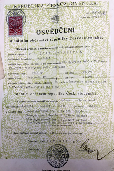 Deena Pearlman (nee Slamowotz) (my grandmother) was born on October 4, 1930 in the town of Maidan which was then located in Czechoslovakia (today in Ukraine).
