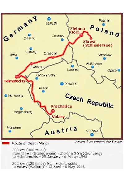 Towards the end of the war, Herta was transferred to Grunberg and was part of a “Death March” that lasted 106 days. It was very cold, and the women walked without shoes for miles a day through the snow. They slept outside or in abandoned barns. As the group continued, the women approached a small village close to the Czech border. Herta’s friend suggested that they run away and escape, however Herta was reluctant. She wasn’t a risk taker and was scared. Herta told her friend to go without her. At the last moment, Herta decided to make a run for it. Together they ran off the road towards a cemetery with a small shed beside it. They quickly hid in the shack and prayed that they would not be followed or caught. Some women tried to follow them, but were shot. Herta and her friend waited until dark and then came out and walked towards a tiny light that turned out to be a house. They were taken in and given food and shelter although Herta and her friend didn’t disclose that they were Jewish. As soon as the family discovered that they were Jewish, they were asked to leave. Herta and her friend were directed to cross the border to the Czech Republic where they were ultimately nursed back to health by a family.