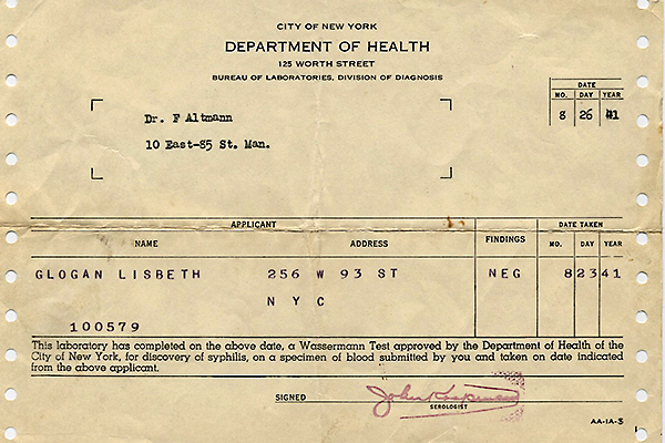 Health Certificate regarding Lisbeth Glogau