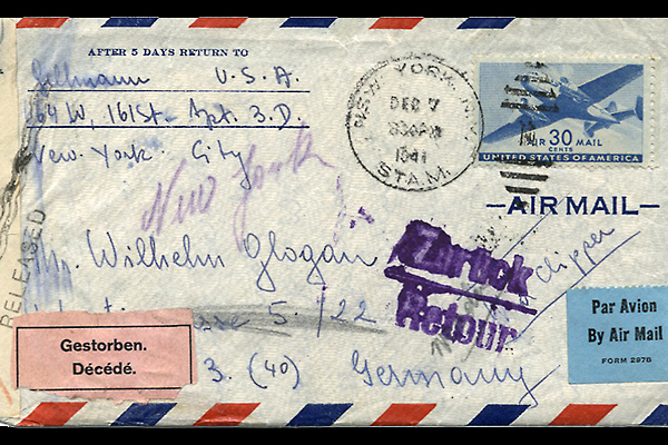 Letter Lisbeth send to her father in 1941. It was retruned to him saying she was dead