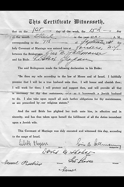 Lisbeth Glogau & Gus Gellmann Marriage Certificate
