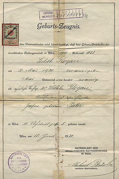 Lisbeth Glogau Birth Certificate