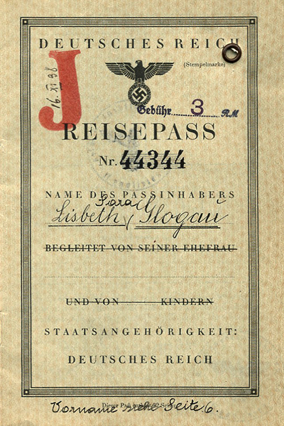 Lisbeth Glogau PassPort- Nazis add Sara to her name