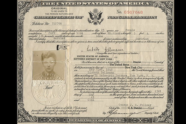 Naturalization Certificate for Lisbeth Gellmann May 23 1945